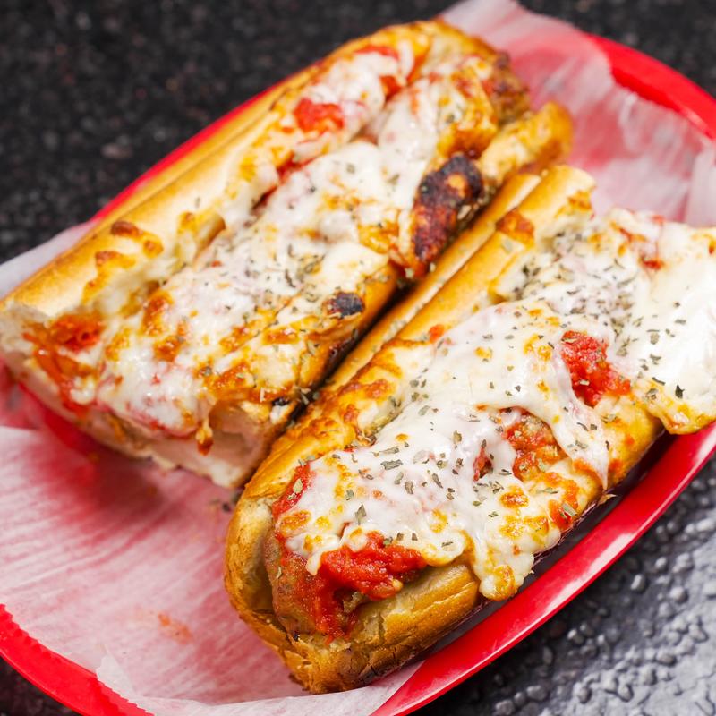 Small 7" $7.19 | Large 12" $9.59 • generous portion of homemade meatballs, homemade marinara sauce, topped with mozzarella & provolone cheese